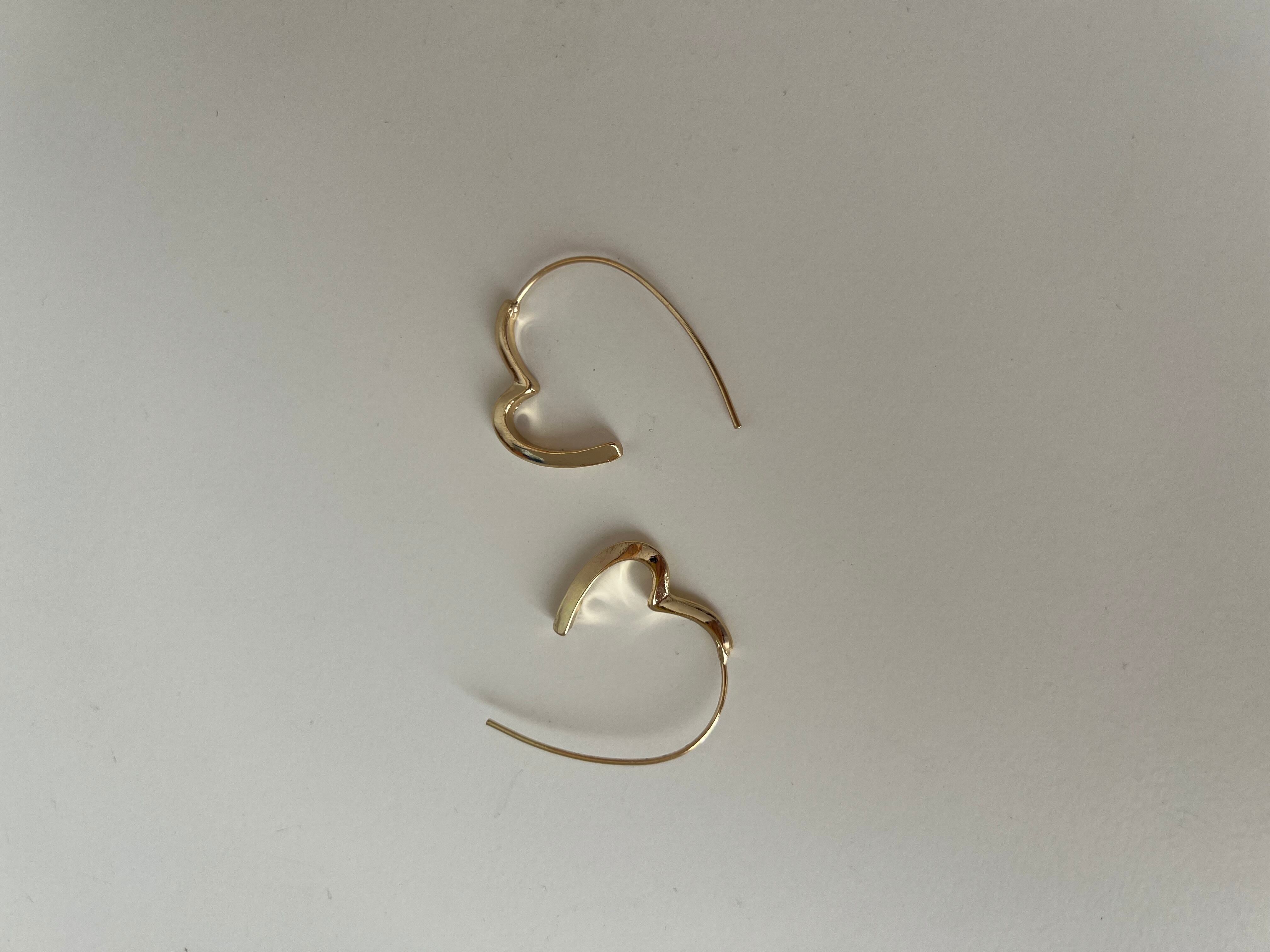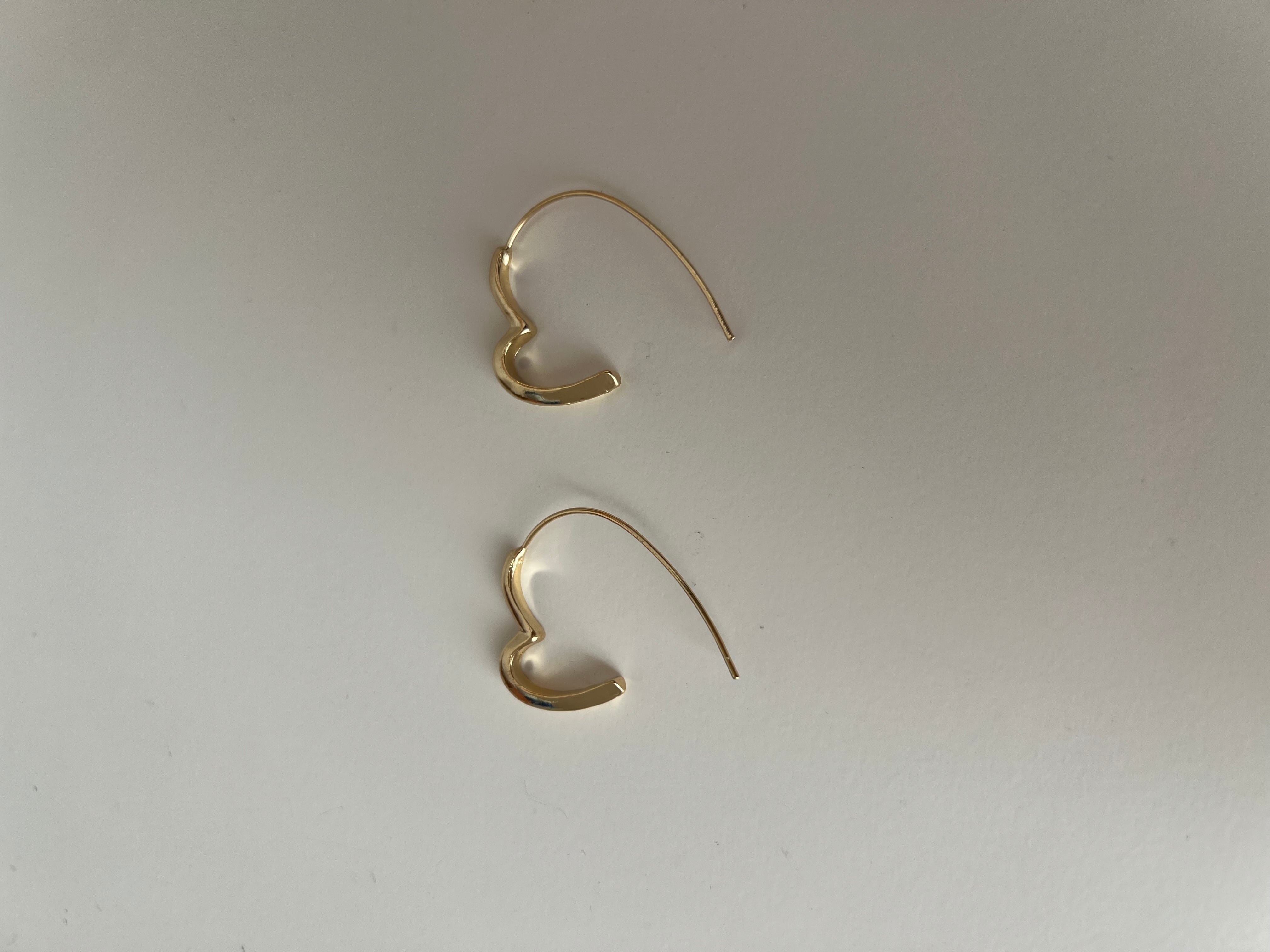 ピアスキャッチいらずでハートを引っ掛けるタイプのピアス。