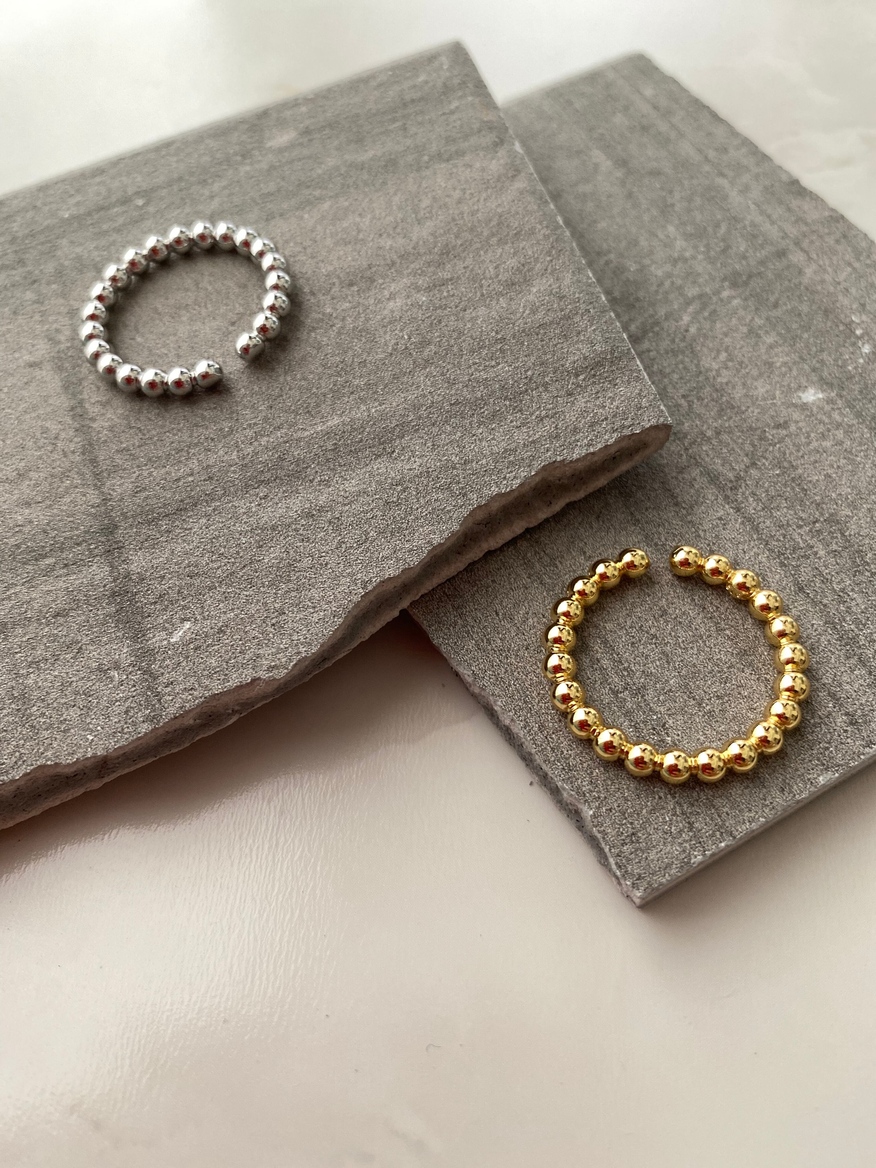 単品でも、重ねづけでも、かわいい大人っぽいリング。シンプルなメタルボールデザインで他リングとの相性も抜群。フリーサイズでどの指でも着用できます。3連で付けるのもかわいいです。