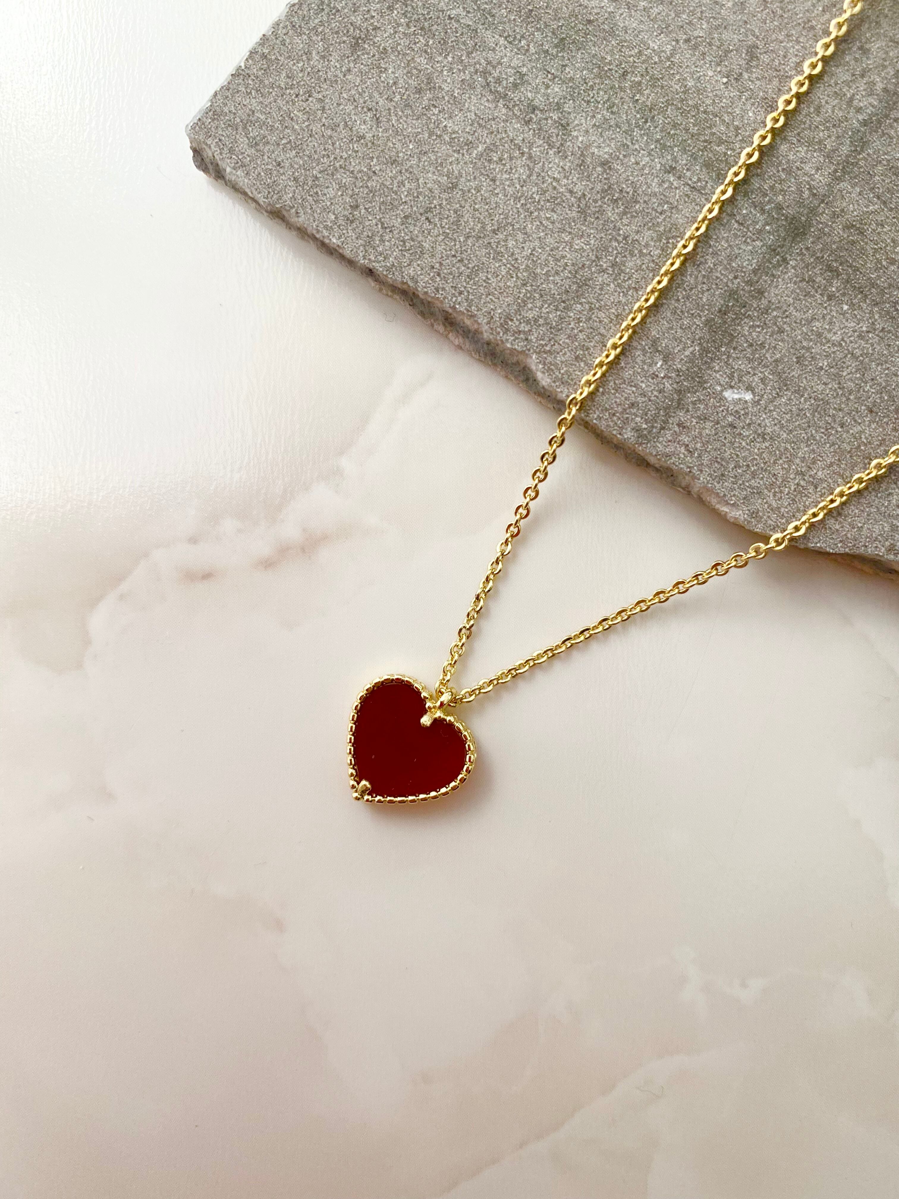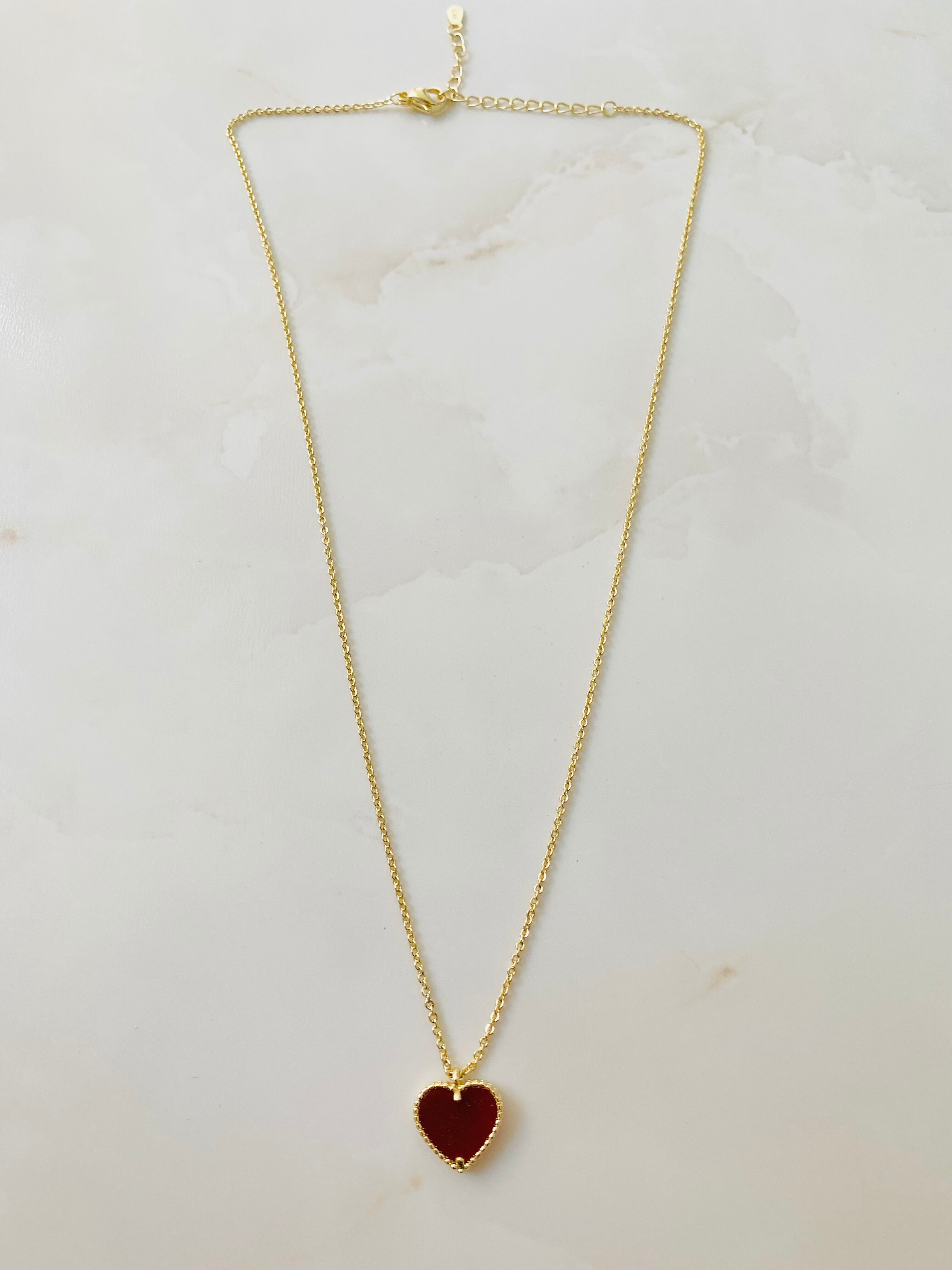 これほど手に持った時と、付けた時の見え方が変わるネックレスは珍しいです。持った時は繊細なお作りで華奢な感じですが、装着すると、しっかり存在感を発揮してくれます!赤いハート♥️を付けるだけで何気ないトップスが一気にかわいくなります。